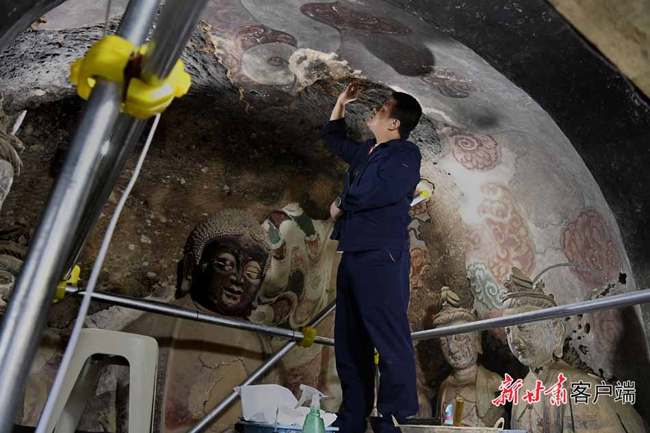 石窟外的時間流過千年,加之地處多雨林區(qū),文物保護(hù)變得極為不易,塑像和壁畫容易出現(xiàn)空鼓、開裂、脫色等病害。為保護(hù)好麥積山石窟,他們堅守在山野之間,與寂靜洞窟為伴,不斷更新文物保護(hù)方式,守護(hù)著這些珍貴的歷史文化瑰寶。