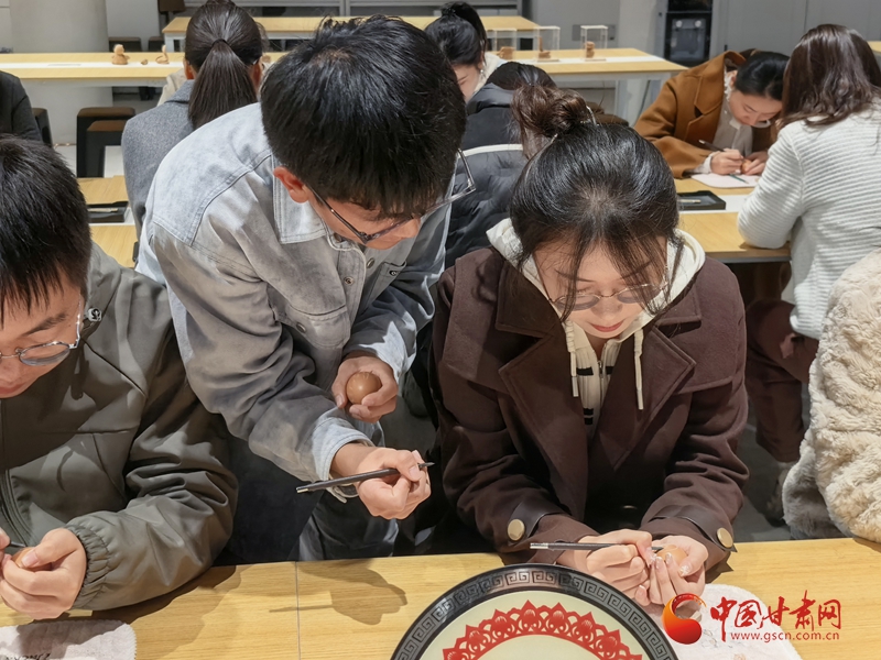 第一期非遺傳承公益課隨之拉開帷幕,非遺傳承人積極發(fā)揮傳幫帶作用,手把手用情傳授“蛋雕技藝”,青年學(xué)員們用心感受刻刀舞動(dòng)在蛋殼上的文化痕跡,讓非遺技藝綻放出青年對(duì)非遺的熱愛(ài),讓青年在沉浸式體驗(yàn)“活”著的非遺中,堅(jiān)定文化自信、激發(fā)創(chuàng)造熱情。