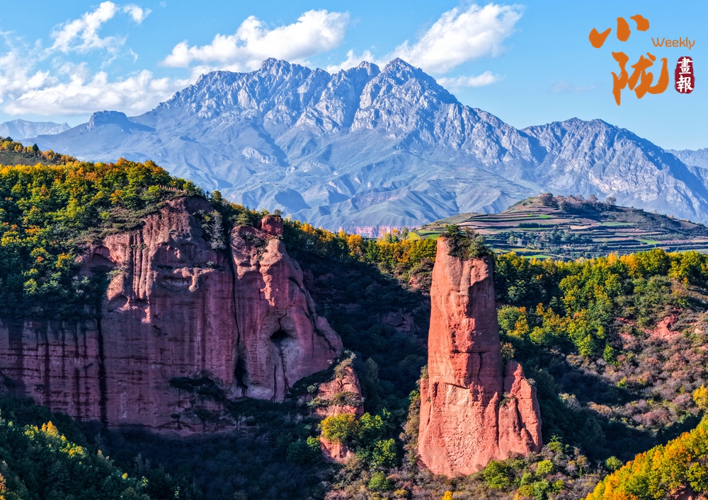 俯瞰整個(gè)冶力關(guān),遠(yuǎn)處的雪峰在陽光照耀下泛著銀光,與近處的彩林形成鮮明對(duì)比,宛如一幅氣勢(shì)磅礴的山水畫卷。