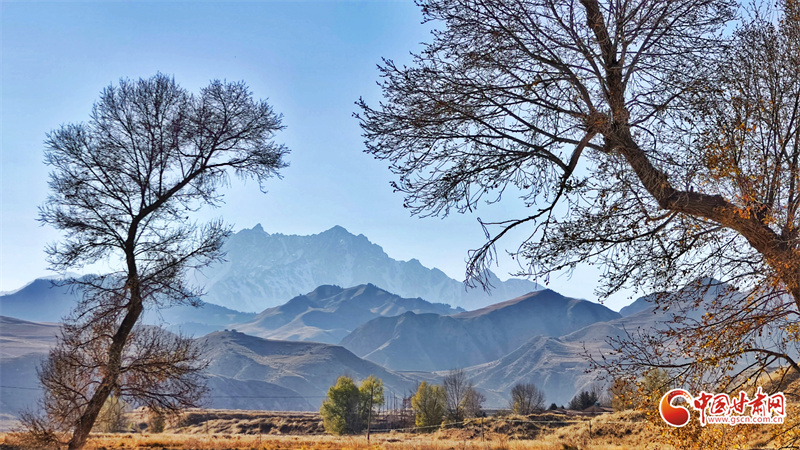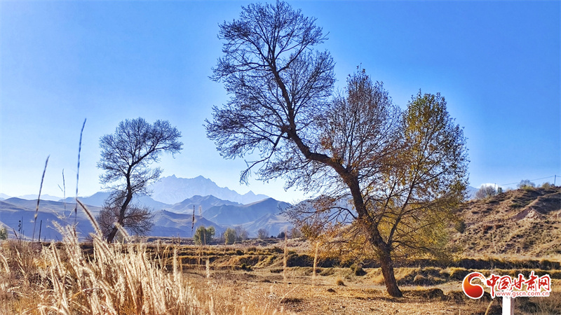 初冬時節(jié),張掖市民樂縣南古鎮(zhèn)柳谷村景色宜人。巍峨的祁連山脈連綿起伏,山腳下,萬畝良田阡陌縱橫,黃綠相間的樹木點綴其間,為大地暈染出豐富的色彩層次,盡顯祁連山下冬日的獨特韻味。