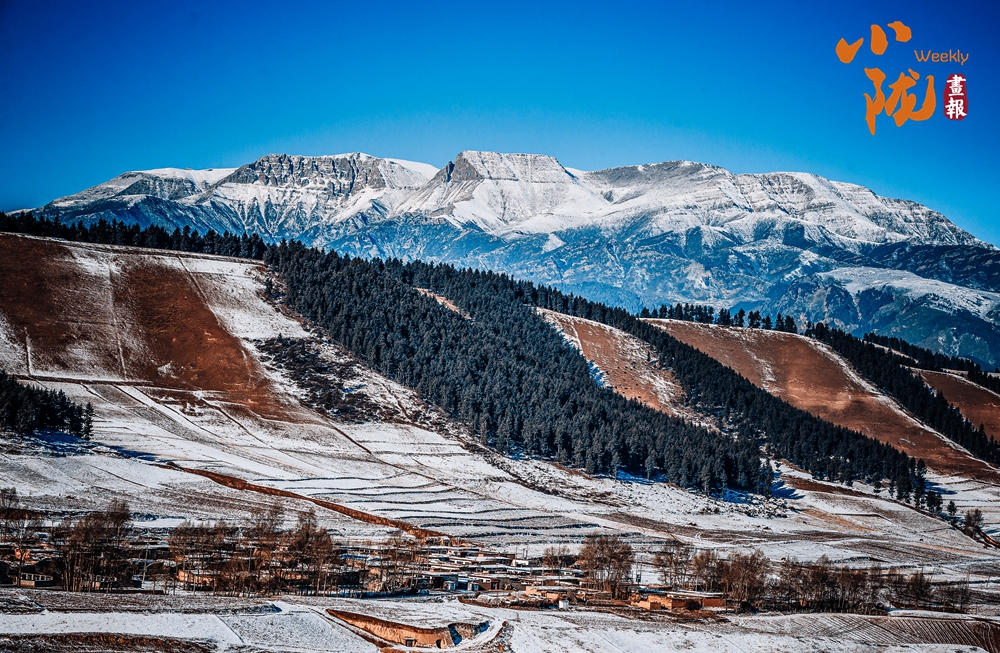 初冬的翠綠與雄偉的祁連山呼應成景,遠遠望去,整個山間宛如一盤秀美的精致盆景,格外奪目。林葉繽紛的冬日一點也不亞于百花爭艷的春天。