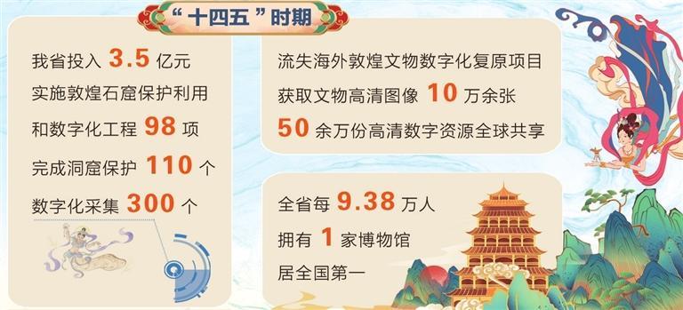 在文物保護(hù)提質(zhì)升級方面,我省投入3.5億元,實(shí)施敦煌石窟保護(hù)利用和數(shù)字化工程98項(xiàng),完成洞窟保護(hù)110個(gè)、數(shù)字化采集300個(gè),建成全球首個(gè)文物保護(hù)多場耦合實(shí)驗(yàn)室,制定國家和行業(yè)標(biāo)準(zhǔn)27項(xiàng),科研成果服務(wù)16省市及部分共建“一帶一路”國家;流失海外敦煌文物數(shù)字化復(fù)原項(xiàng)目獲取文物高清圖像10萬余張,50余萬份高清數(shù)字資源全球共享;第四次全國文物普查新發(fā)現(xiàn)線索4659條,投入24.26億元實(shí)施900余項(xiàng)重要文保項(xiàng)目;打造河西走廊國家遺產(chǎn)線路,創(chuàng)建嘉峪關(guān)長城國家文物保護(hù)利用示范區(qū),全省文物系統(tǒng)性保護(hù)成效顯著,“中國特色?敦煌經(jīng)驗(yàn)”國際影響力持續(xù)提升。