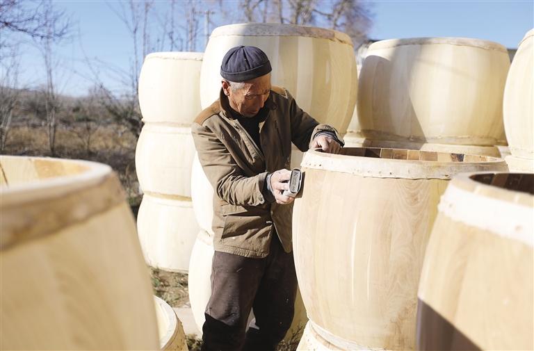 冬日農(nóng)閑時(shí)節(jié),在甘肅省定西市安定區(qū)鳳翔鎮(zhèn)北廿鋪村,牛皮鼓手工制作藝人利用晴好天氣趕制訂單牛皮鼓,供應(yīng)市場。該村每年可制作各類牛皮鼓3000余面,牛皮鼓手工制作涵蓋選材、解板、刨制鼓腔、蒙皮、釘釘?shù)榷嗟拦ば?,再?jīng)數(shù)天晾曬和反復(fù)調(diào)試才能最終制成。牛皮鼓是我國的傳統(tǒng)打擊樂器,在西北地區(qū)用于民間社火表演等活動。