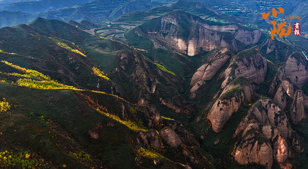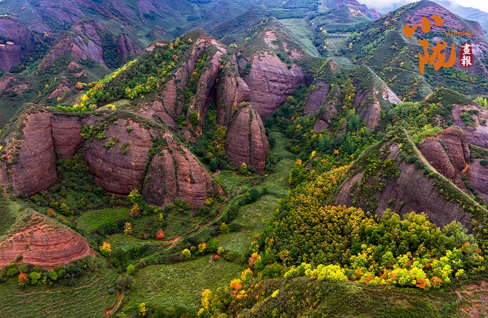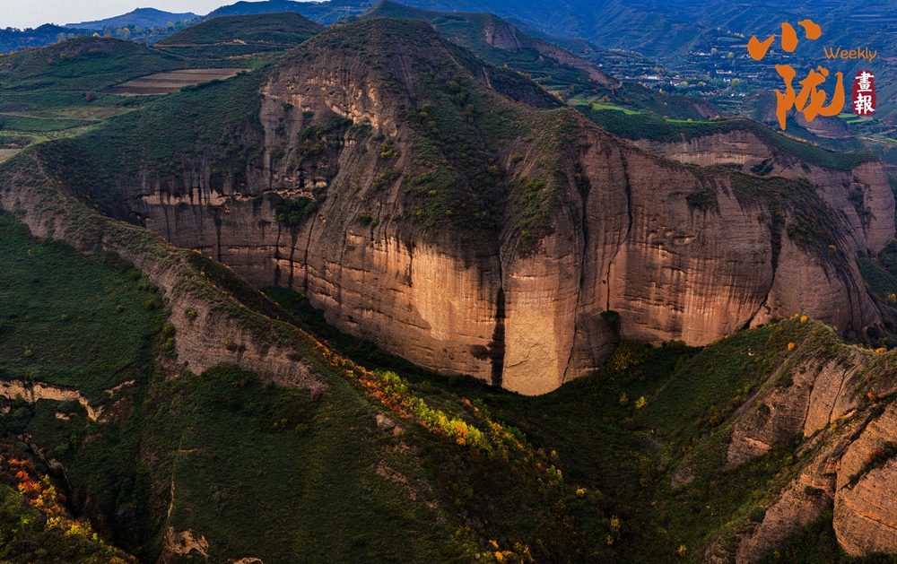 遠遠望去,山谷間、山巖上,一簇簇、一片片墨綠色草叢,將丹霞的紅、初冬的彩、山體的褐輕輕暈染,構(gòu)成一幅美麗的冬日美景。